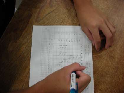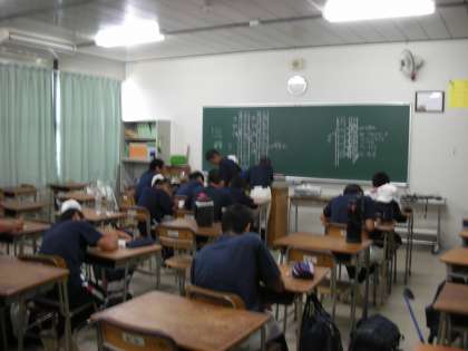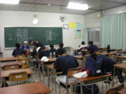 野球部が高校野球の実況放送を聞きながら、スコアブックに記入する練習をしています。
