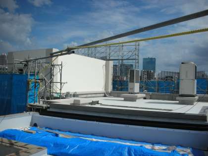 西館屋上から見た、南館の屋上の写真です。 搭屋がきれいに塗装されています。