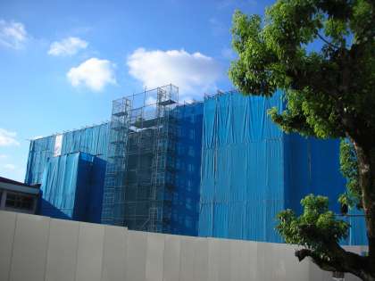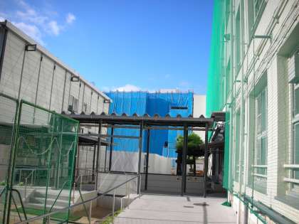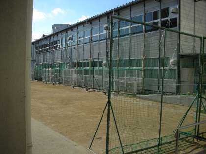 下は、きれいに整備されたグラウンドと仮設校舎です。