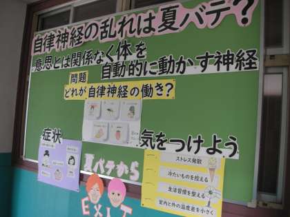 保健室の掲示板には、いつもタイムリーな話題を楽しみながら見ることができる掲示物があります。