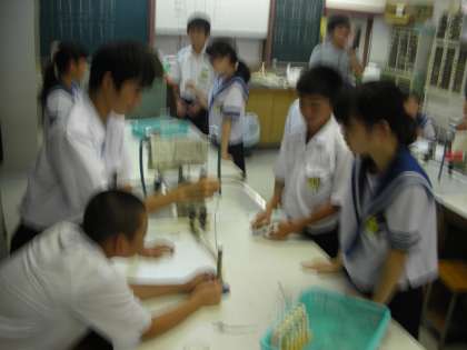 生徒たちは、それぞれの班で、「粉末に火が付いた」「火が消えたら黒くなった」と、その現象を観察していました。