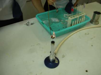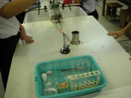 この実験では、マッチを擦って火をつけること、ガスバーナーに正しい方法で火をつけること、使用した後のマッチの軸を処分すること等、活動面でしっかりと学ぶところがあります。