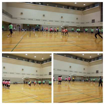 女子の試合が始まりました。女子も元気な声を出して、試合をしています。