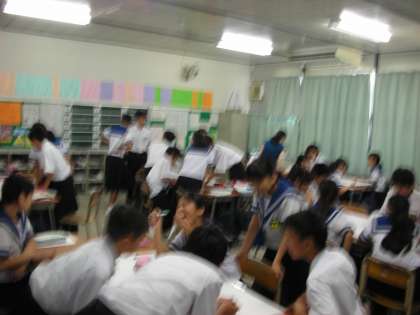 生徒たちは、前段で先生たちが演じる【ピアサポート】の取組を見ました。ちゃんと聞かないと「話をしている人がかわいそう」「話をしている人を無視した聴き方は良くない」ことを学びました。