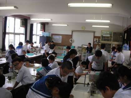 1年生の理科の授業です。岡本(直)先生が1組の授業を行っています。