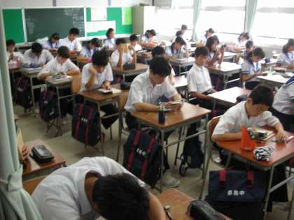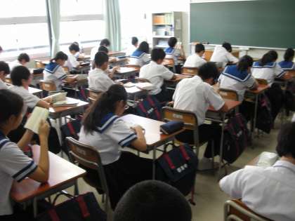 1年生と、2年生は、教室で朝の読書をしています。