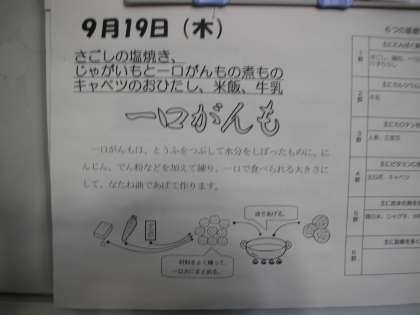 生徒は、『さかな』がおかずの時は、「うーん」という反応です。しっかりと食べてほしいのですが。