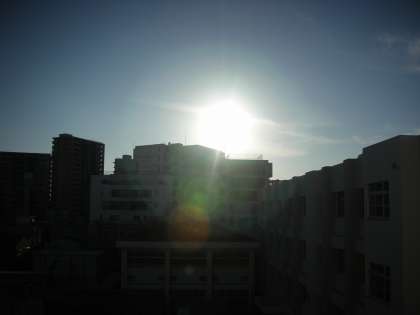 写真は、西館屋上から見た東の空です。まぶしい太陽は出ていますが、確実に秋の気配が漂っています。自然の不思議です。
