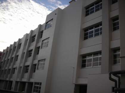 理科室前から見上げた新校舎です。 美しくそびえています。
