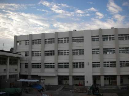 仮設校舎2階の校長室から見た新校舎です。