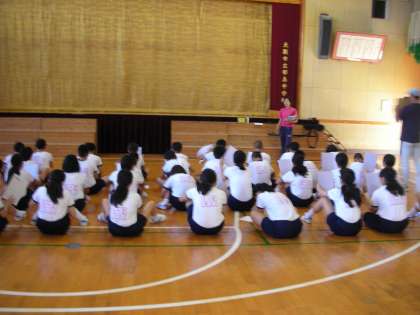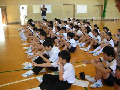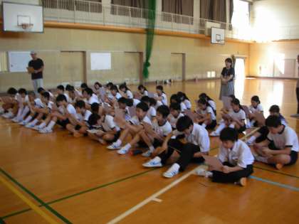 1年生体育の相互授業参観です。竹岡先生が指導しています。
