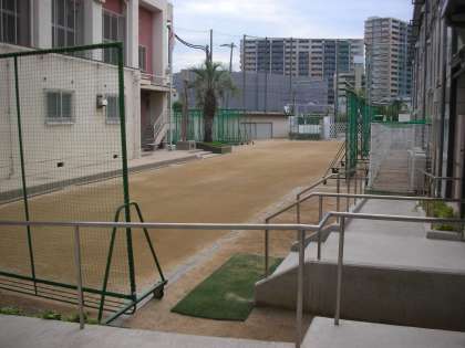 きれいに整地されています。昨日はソフトテニス部が一生懸命練習をしていました。全員で、「1,2,3」と掛け声をそろえてラケットを降る姿は、壮観でした。