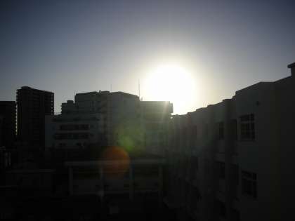 東の空からまぶしい太陽の光が差し込んでいます。今日も良いお天気になりそうです。