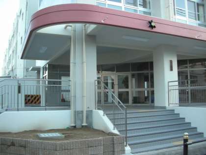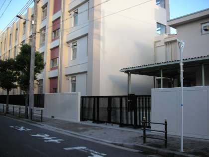 下の写真は、南東角にある給食等の資材搬入口です。立派な門扉です。
