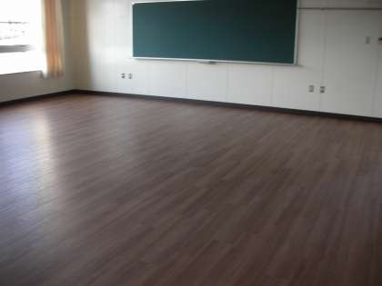 下は、教室内の写真です。教室内の床もピカピカです。寝転んでも大丈夫なくらいです。窓から光が差し込んでとても明るいです。