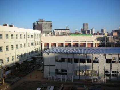 下は左に西校舎、右に仮設校舎です。仮設校舎は間もなく解体されます。