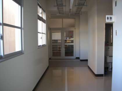 新校舎の2階から格技室に入館できるようになりました。新校舎の工事中には、格技室の北側にある非常階段から入館していました。