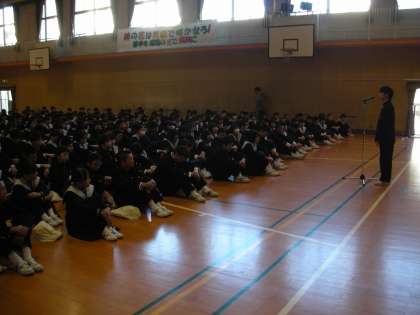 昨日行われた全校集会の様子です。