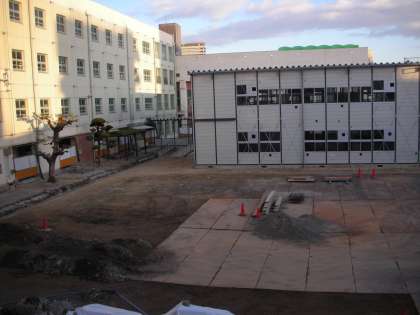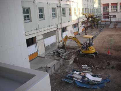 西校舎前の放送室が解体されました。新南校舎に素晴らしい放送室ができたためです。
