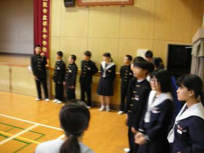 5分前行動をしています。今日は、専門委員会報告があるので、各委員長が前に並んでいます。