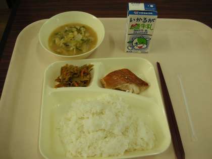 昨日の給食の写真です。 お魚もきんぴらごぼうもおいしくいただくことができました。