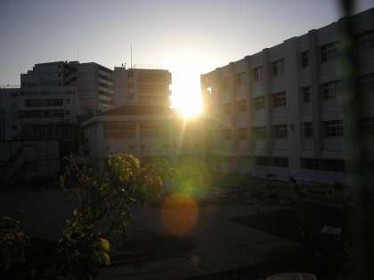 写真は、西校舎2階から見た東の方向です。窓枠が一つずれるだけで、見え方が全く変わってきます。面白いですね。