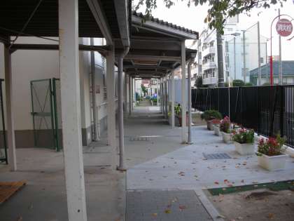 西校舎から体育館に出る通路になる部分です。プレハブの倉庫がありましたが、西校舎の南の端に移設しました。