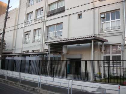 上は、体育館前から見た西校舎の裏側です。渡り廊下の向こう側に、畑があります。
