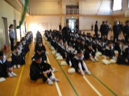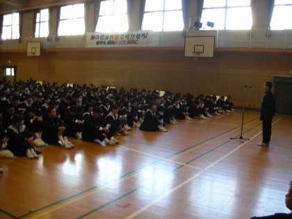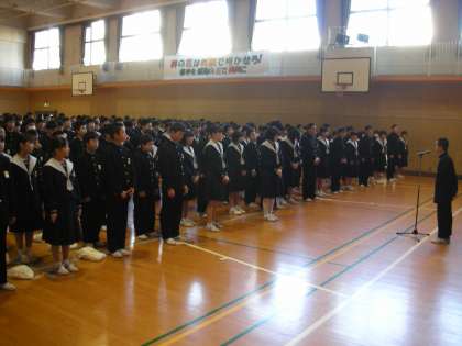 生徒会長から、「3年生は水曜日に実力テストがあります。また、全学年とも明日から期末テスト1週間前になります。しっかりと準備を始めましょう」と、呼びかけがありました。