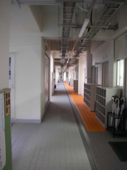 左は西校舎の廊下です。右は新南校舎です。