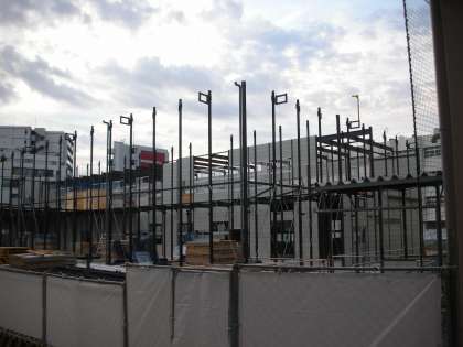 下は、新南校舎2階の窓から見たものです。こちらはまだ壁が残っています。