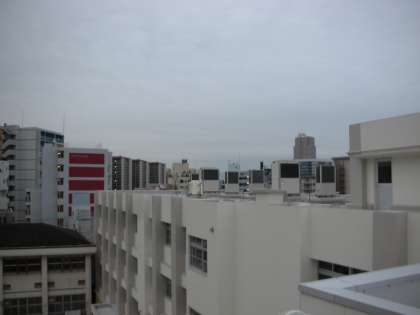 下は、同じく西校舎屋上から見た4階の教室です。きれいな壁面、窓ガラスの向こうに教室が見えています。もうすぐ、テストに取り組む生徒たちの姿が見えるようになります。みんな頑張れ!