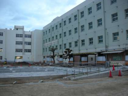 下の2枚は、今朝体育館側から見たものです。真ん中の写真は、左に格技室、右に新南校舎が見えます。下の写真は、