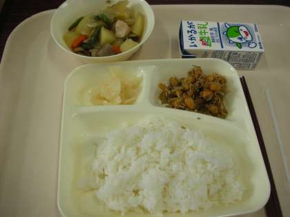 鶏肉と野菜の煮もの、じゃこ豆、かぶのゆず風味、ごはん、牛乳でした。