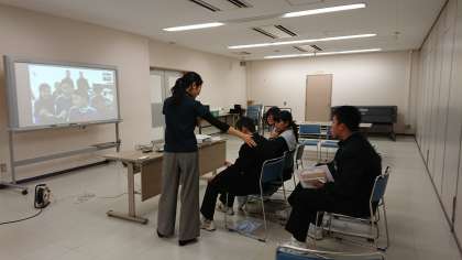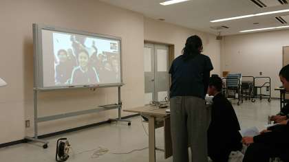 2日間にわたり、ネパールの中学生と、画面を通しての交流をおこないました。会話には、英語・ネパール語・日本語を使い、お互いの言葉を教えあいながら、あいさつを交わしたり、質問を出し合ったりし、大いに盛りあがりました。国の違いや言語の違いを超えて仲良くなることができ、貴重な経験になりました。