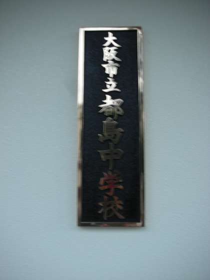 上は、正門玄関左にある自転車用の通用門に掲げられている表札(学校名)です。下は、正門玄関の右手の柱に掲げられている表札(学校名)です。