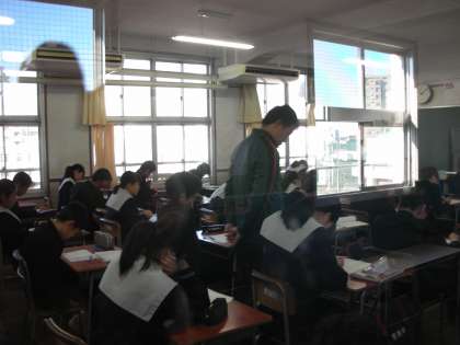 2年2組は、理科の授業です。みんなプリントの問題に取り組んでいます。