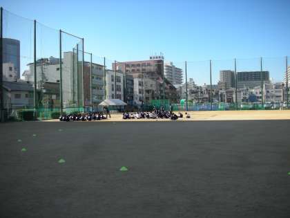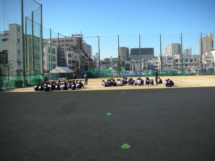 1年1組と3組は、第2グラウンドで保健体育の授業です。