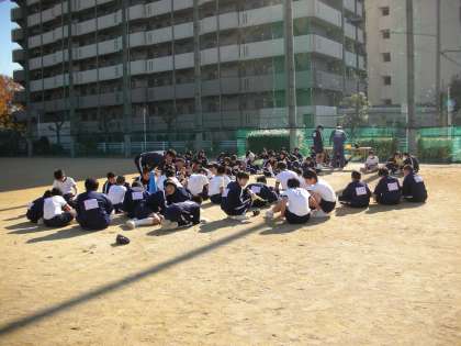 第2グラウンドに移動しての授業は、なかなか大変です。