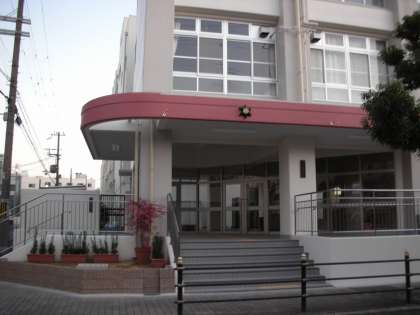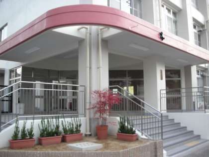 下の2枚は、正門玄関付近の写真です。まだ植物が植えられていないので、植木鉢が置かれています。ナンテンの木の紅葉が美しいですね。