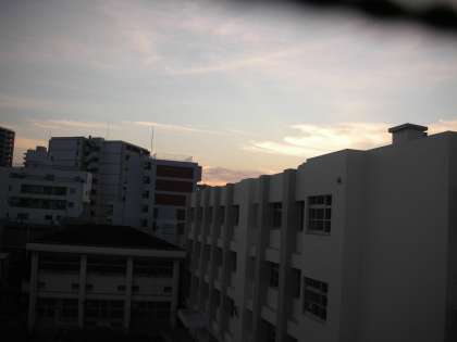 西校舎4階から見た東の空です。まもなく太陽がマンションの向こうに見えるようになります。