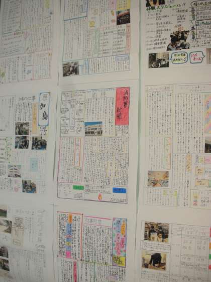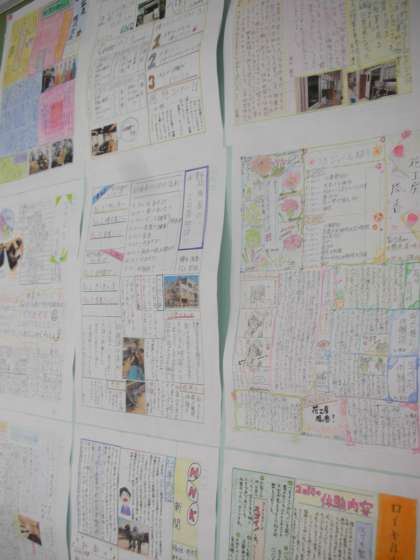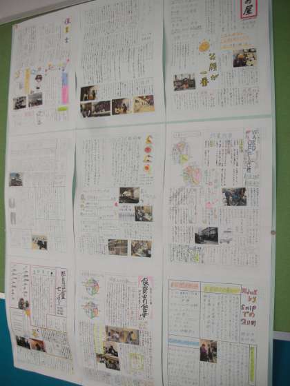 2年生の教室前の廊下には、『職業体験学習』についてまとめた『学習新聞』が掲示されています。