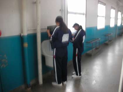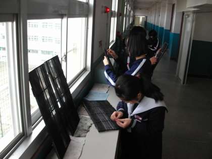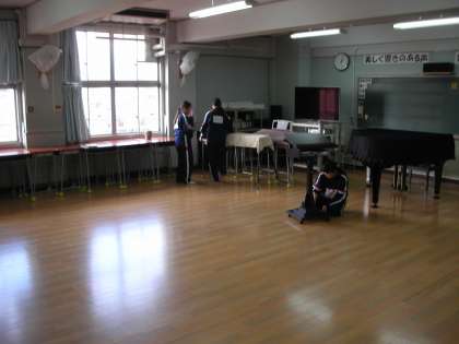 1年の最後の練習日に大掃除をするのは、音楽部の恒例行事です。3年生も参加してきれいにしています。