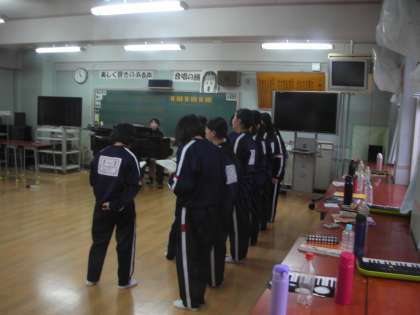 音楽部は、音楽室で各パート別に練習したことを合わせる練習をしています。