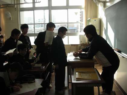 1組は、数学です。冬休みの宿題の答え合わせをしています。