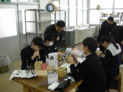 技術室で実習をしています。