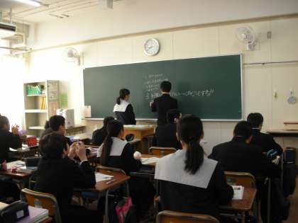 前では、係の人が模範解答を板書していました。