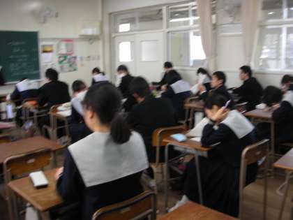 この日は、公立高等学校前期の入学願書を書く練習をしていました。