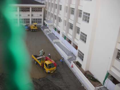 新校舎のグラウンド側にも植物が搬入されました。これから植樹されます。