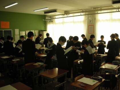 3年1組は英語、3組は社会、4組は国語の授業です。